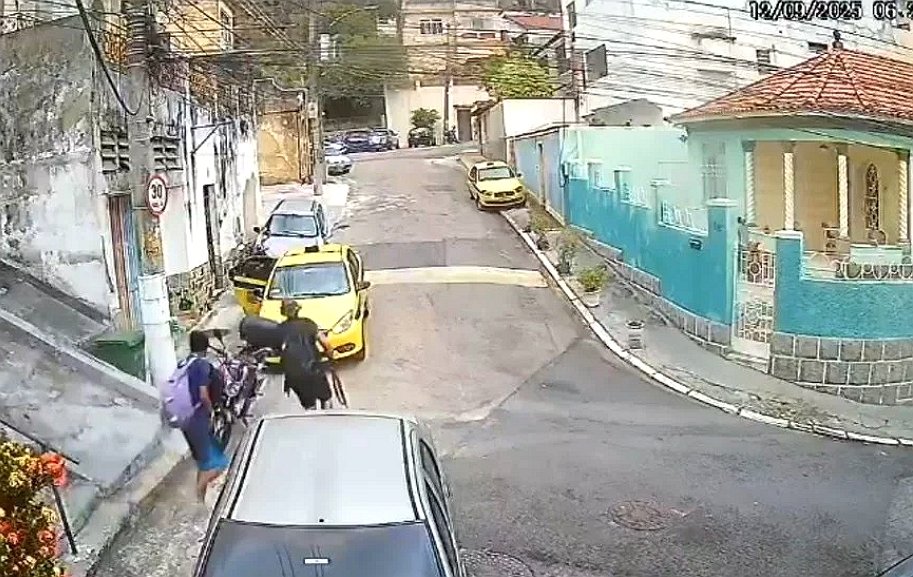 As imagens registram quatro homens armados descendo uma escadaria por volta das 6h24. Eles se aproximam de um táxi estacionado, e um deles rende o motorista. Em seguida, começa o tiroteio. Três suspeitos são atingidos. Dois caem na calçada e o terceiro tenta se proteger atrás de um poste, mas não é atingido novamente. Um dos criminosos consegue escapar subindo as escadas.