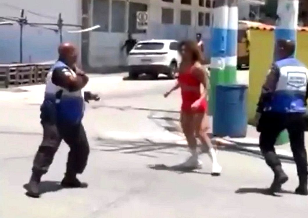 Uma mulher foi flagrada brigando sozinha com dois policiais militares nesta sexta-feira (9), no centro da cidade de Japeri, região metropolitana do estado do Rio de Janeiro.